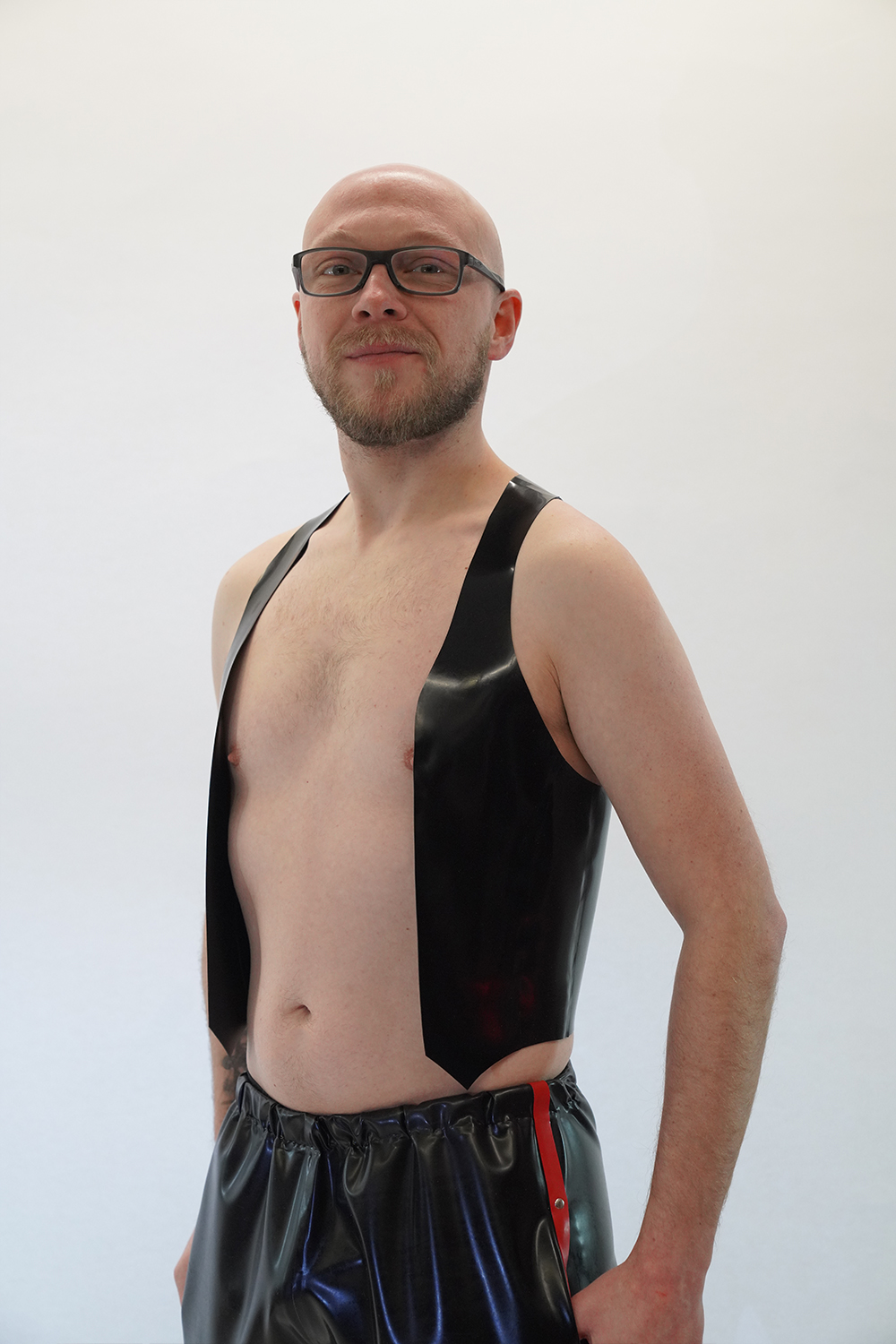 Gefertigt aus stabiler 0,8 mm Latexfolie, bringt die „Dublin“ klare Linien, spürbare Kraft und kompromisslose Szeneästhetik. Die kurze Form legt den Fokus auf Brust und Schultern, während zwei innenliegende Taschen (je eine pro Seite) Funktionalität und Design perfekt vereinen.